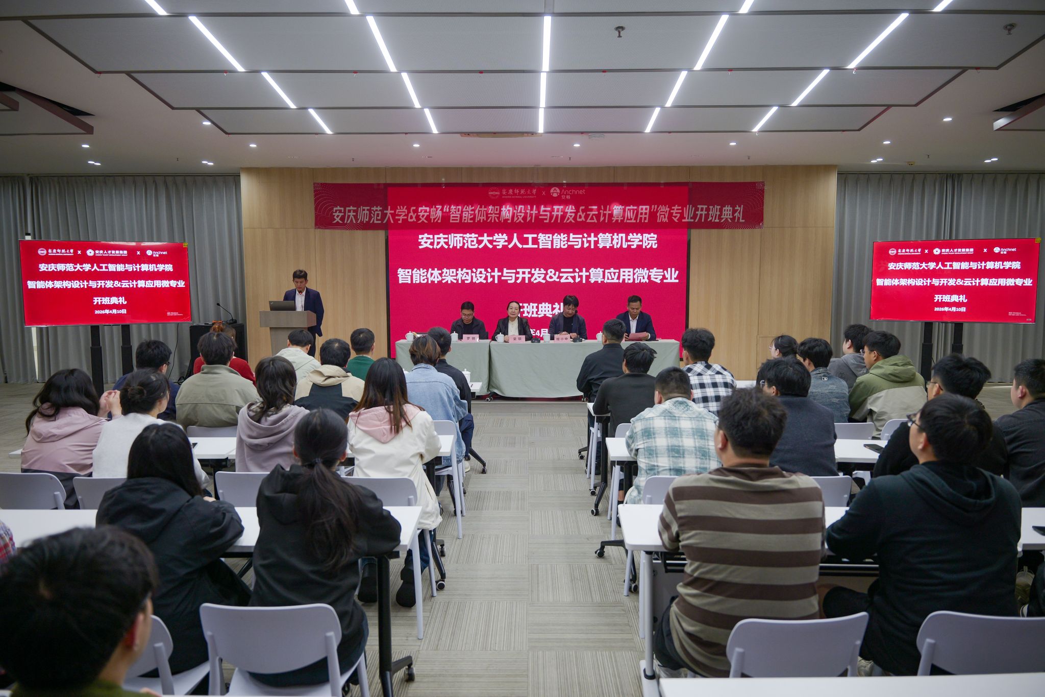4月10日,学校首期“智能体架构设计与开发”与第三期“云计算应用”微专业同步举行开班典礼。校党委常委、副校长吴琼出席典礼。安畅集团董事长程小中,安庆市人才集团人才科创产业园公司…