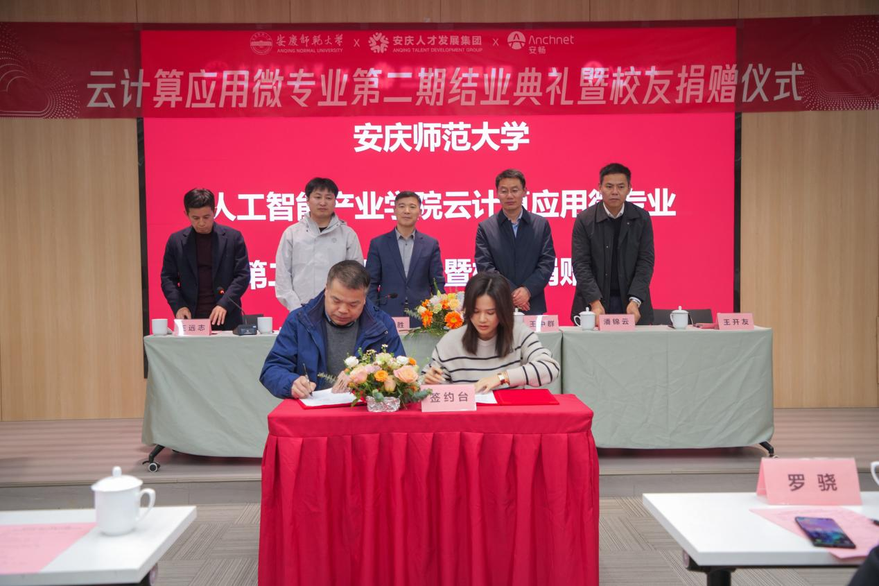 12月19日,学校在筑梦产业园隆重举行“云计算应用”微专业第二期结业典礼暨校友捐赠仪式。校党委常委、副校长申传胜出席活动。安庆市人才发展集团党委书记、董事长王中群,安畅集团总裁程小中,教务处、8846威尼斯(人工智能产业学院)相关负责人、企业代表、教师代表和全体学员参加活动。