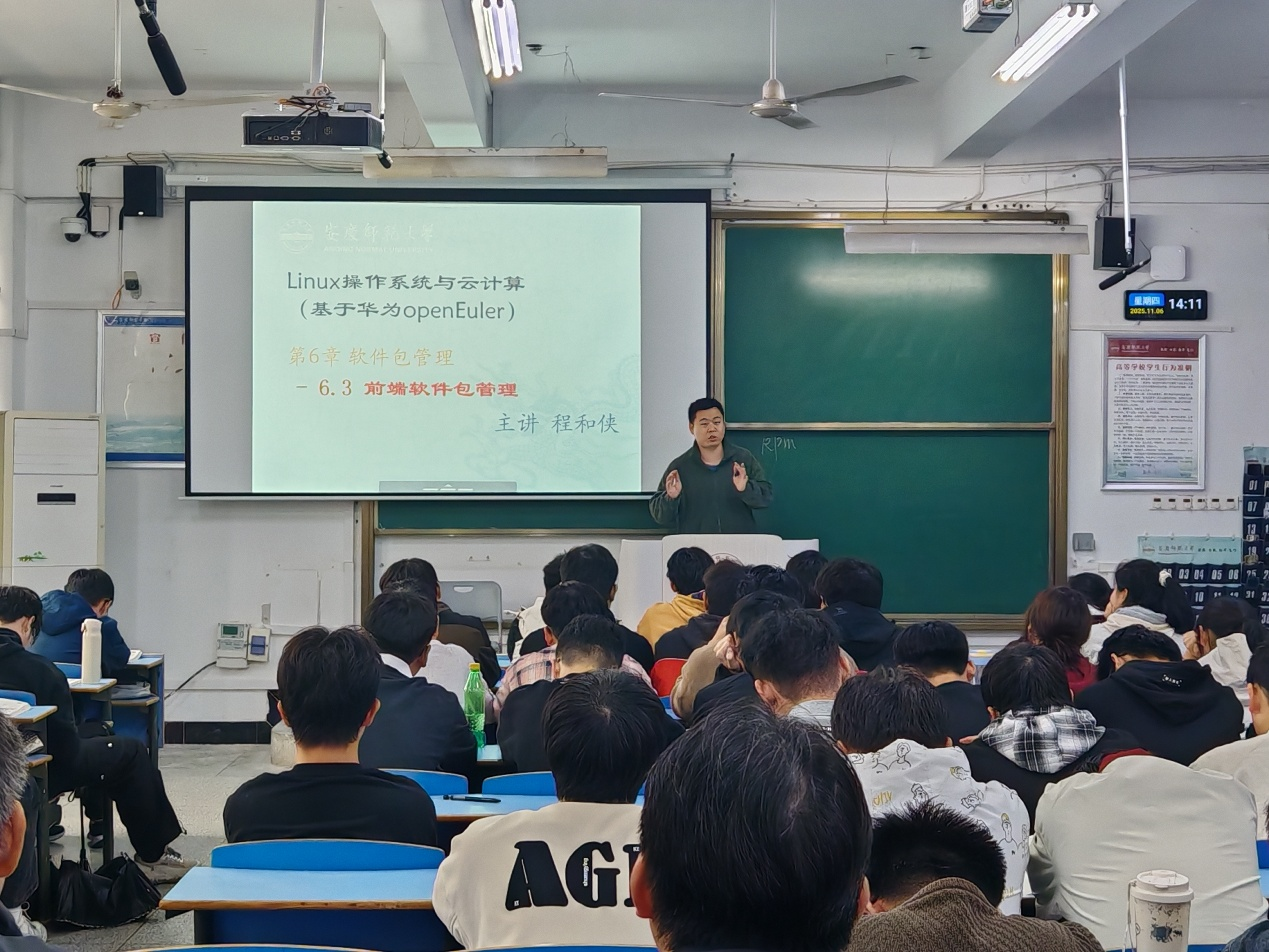 程和侠老师主讲《Linux操作系统》第六章“软件包管理”,教研室全体教师参与听课,并特邀学院教学督导组程玉胜教授、王一宾教授莅临指导。课后,全体人员在原教室围绕“专业课程与思政育人深度融合”主题展开深入研讨。