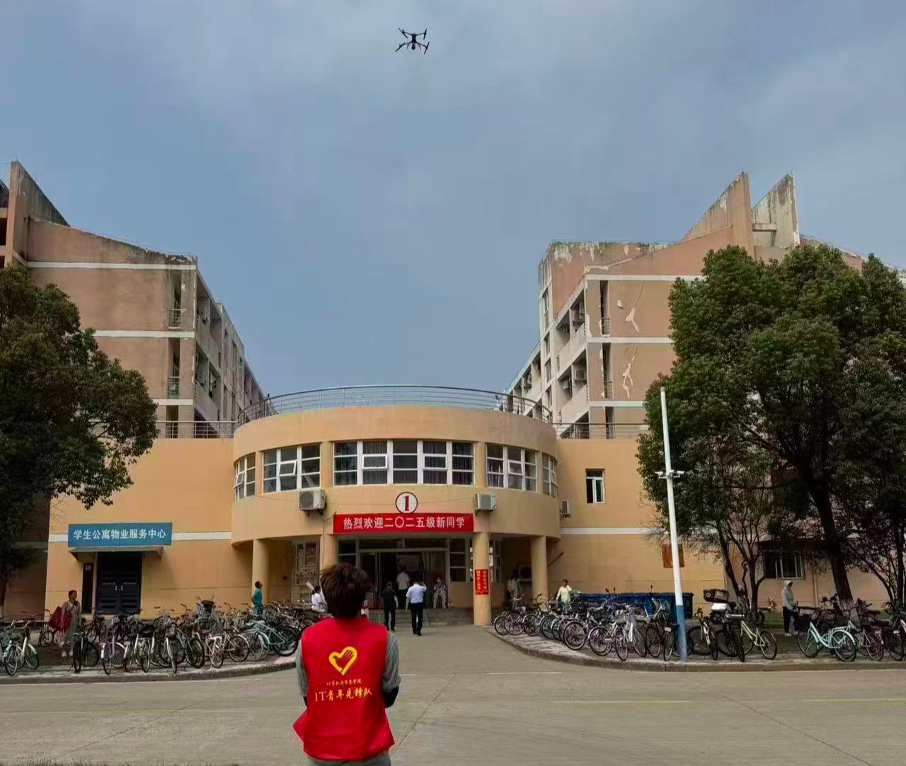 “不少新生刚进校园,就被上空的无人机吸引,主动围了过来。”西门迎新志愿者、法学专业2024(3)班的梅雨馨感叹,从法律专业角度看,这种“先吸睛再传知”的模式很有效,“它把抽象的法律条文和防范技巧,转化成可互动、可体验的现实场景,帮助新生提升法律意识和防范意识,为大家筑牢安全防线。”